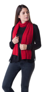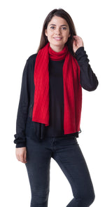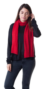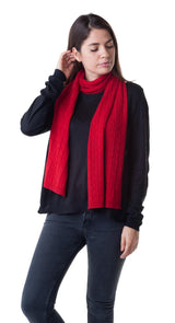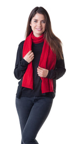 Cashmere Merino Scarf - Cable Knit - Soft Warm Stylish Winter Scarves for Women & Men - Red