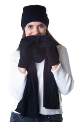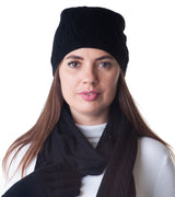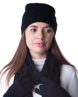 Beanie Hat- Cable Knit - Cashmere Merino - Warm Stylish Winter Head Gear - Black