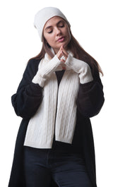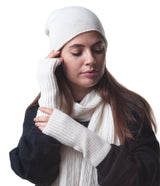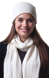 Cashmere Merino Beanie hat - Jersey Knit- For Women & Men - Ivory