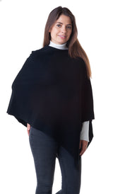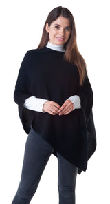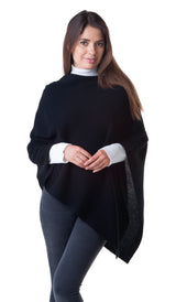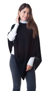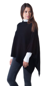 Poncho - Cashmere & Merino - Ribbed Design - Shawl Knitted in Black