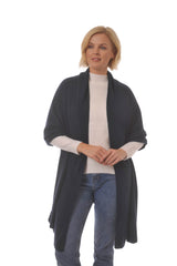 Blanket Scarves - Super-Sized Wraps in Cashmere Merino - Shawl or Giant Scarf - Ribbed Design - Perfect for Winter and Ideal for Travel - Navy Blue