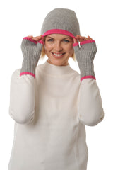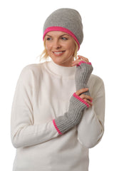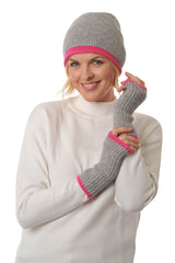 Cashmere - Merino Fingerless Glove - Wrist-warmers with Coloured Trim - Flannel Grey & Fuchsia Pink