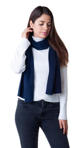 Cashmere Merino Scarf - Rib Knit - Soft Warm, Stylish Winter Scarf for Women & Men - Navy Blue